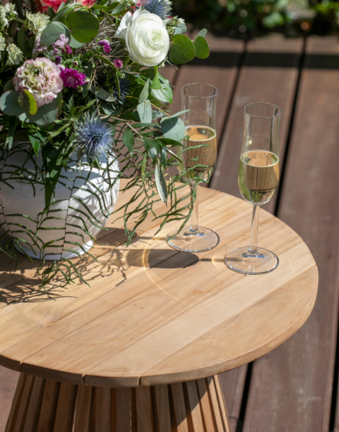 Spiele mit verschiedenen Farben und Texturen: Helle Holzarten harmonieren gut mit Metall und kräftigen Farbnuancen. Dabei solltest du auch immer die Pflegeleichtigkeit der Materialien im Blick behalten. So bleiben deine Möbel länger schön und funktionell. Wir empfehlen mit einem milden Reinigungsmittel und regelmäßiger Pflege Klappsessel & Co. in Form zu bringen, damit diese auch jahrelang schön erhalten bleiben.