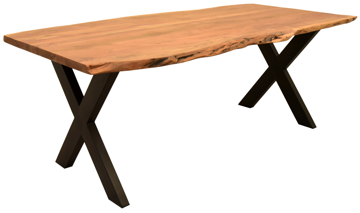 Baumkantentisch Catania Akazie X-Bein Gestell 160 x 90 cm