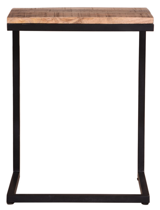 Gefertigt aus massivem Mangoholz besticht der Beistelltisch durch seine sichtbare Struktur und die charaktervolle Oberfläche. Das Holz ist in Bohlenoptik zusammengefügt und weist leichte Erhebungen sowie feine Sägemarkierungen auf – ein bewusst natürliches Merkmal, das den handwerklichen Charakter unterstreicht und jedes Stück zu einem echten Unikat macht. Das schwarze Metallgestell sorgt für einen stabilen Stand und unterstützt das natürliche Design mit einem modernen Kontrast.