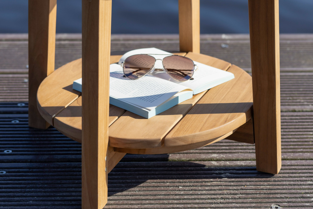 Erleben Sie den Beistelltisch Milton Teak Rund 50 cm als funktionales Outdoor-Objekt mit zeitloser Ausstrahlung.