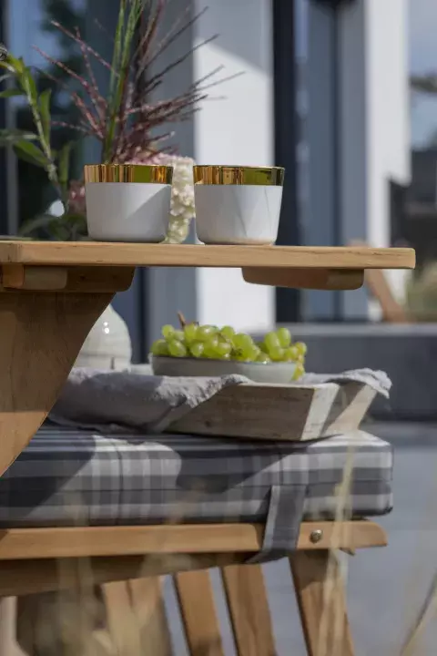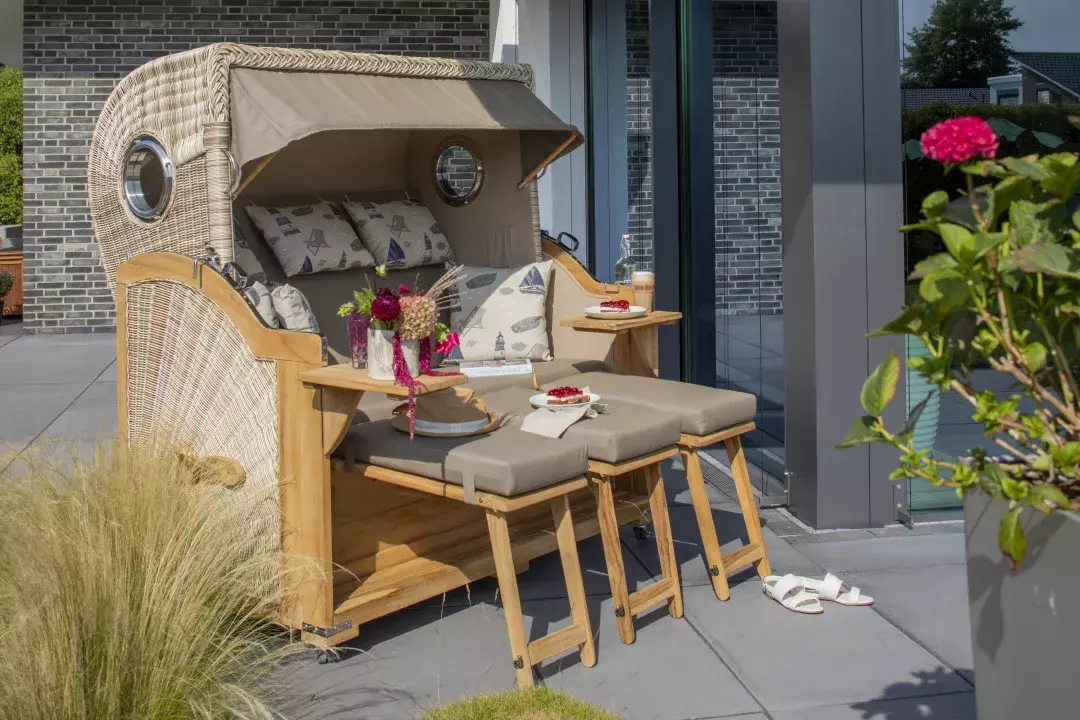 Das Zubehör für den Strandkorb XXL aus Teak ist enthalten