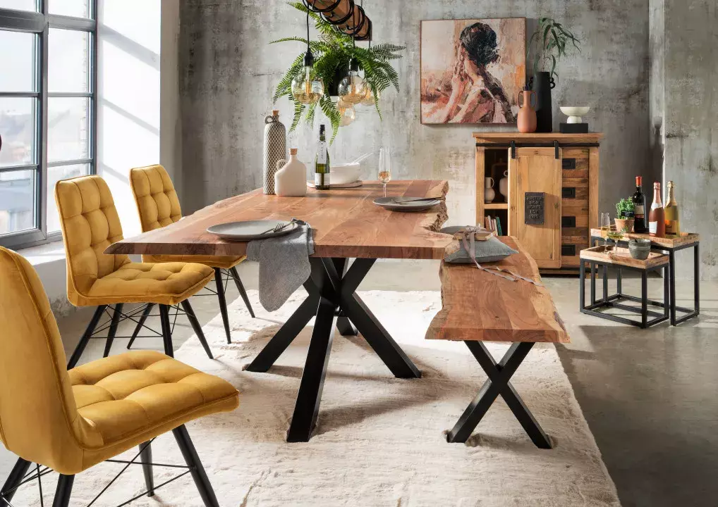 Massives Holz, hochwertige Verarbeitung und die zeitlose Kombination aus natürlichem Material und Metall sorgen dafür, dass das Set über viele Jahre hinweg Freude bereitet. Ein Möbelstück für Menschen, die ehrliche Materialien, Designqualität und authentische Wohnlichkeit bevorzugen.