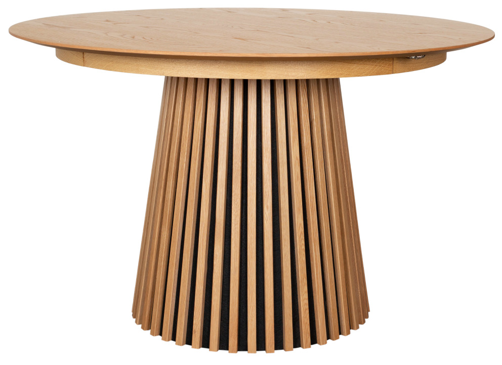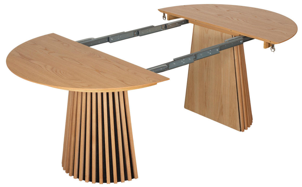 Mit seiner ovalen Form fördert der Esstisch Oria Natur Oak oval 210 x 120 cm fließende Kommunikation und bietet ausreichend Platz für Familie und Gäste. Da er ausziehbar ist, wächst er bei Bedarf mit – für gesellige Abende, Feste und spontane Runden. So bleibt er flexibel im Alltag und schafft dennoch stilvolle Präsenz.