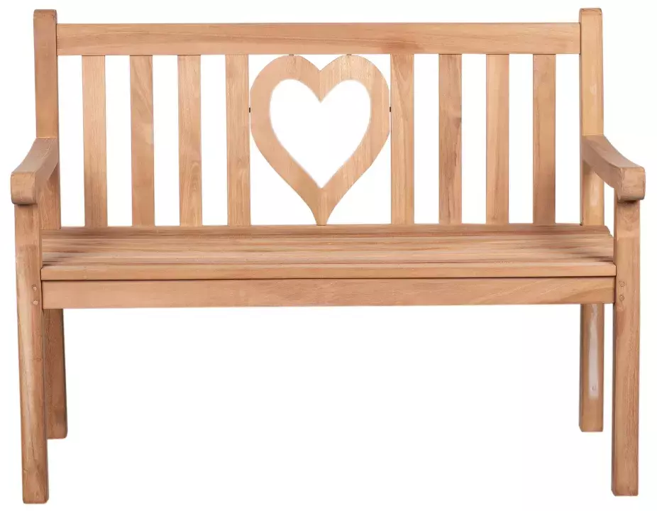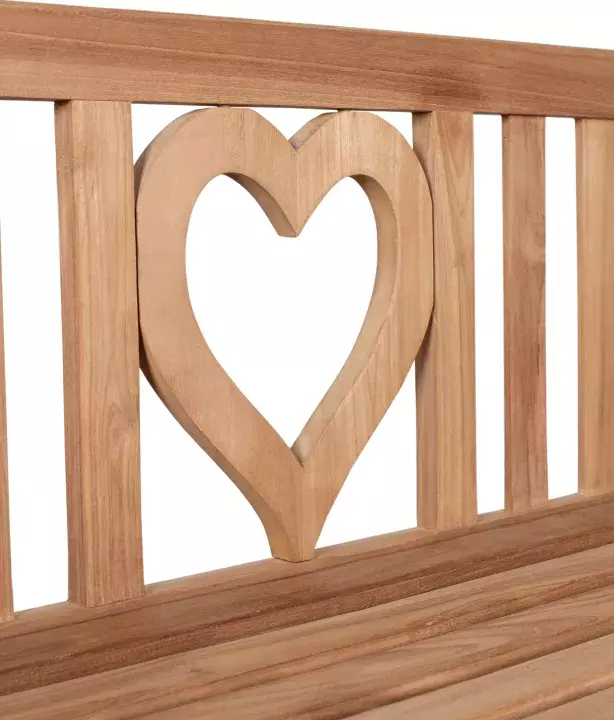 Da die Gartenbank Herz gänzlich aus witterungsbeständigem Teakholz gefertigt ist, eignet sie sich optimal für die lange und intensive Nutzung unter freiem Himmel. Ihr zeitloses Design kommt durch die einzigartige Maserung und den leuchtend braunen Farbton des Tropenholzes besonders schön zur Geltung. Dank ihrer klassischen Formgebung wird sie sowohl auf Ihrer Terrasse als auch mitten im Grünen zu einem auffallend stilvollen Element Ihrer Outdoor-Gestaltung. Die Gartenbank Herz muss lediglich von Zeit zu Zeit mit einem geeigneten Pflegemittel behandelt werden, um ihre makellose und betörend natürliche Optik zu erhalten und Sie und Ihre Liebsten durch unzählige Sommersaisonen zu begleiten.