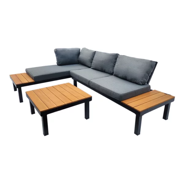Das Set enthält einen passenden Tisch, der ideal ist für Snacks, Getränke oder gemeinsame Spieleabende. Die stabile Bauweise und die ansprechende Tischplatte aus Eukalyptus harmonieren perfekt mit den Lounge-Sesseln.