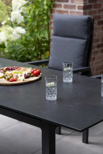 Der Tisch Tarifa hat eine großzügige Ausziehtfunktion und misst im ausgezogenen Zustand 210 x 90 cm. Damit bietet er viel Platz für gesellige Runden, Familienfeiern oder ein entspanntes Frühstück im Freien. Egal ob beim Grillabend oder beim Kaffeeklatsch – dieser Tisch sorgt dafür, dass genügend Platz für alle Gerichte, Getränke und Deko vorhanden ist. Die ansprechende Form und die klare Linienführung des Tischs runden das Gesamtbild des Sets stilvoll ab.