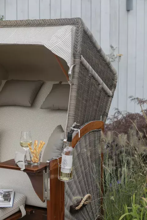 Ganz gleich, ob Sie sich an freien Tagen in Ihrem Strandkorb gerne einem spannenden Buch widmen, die Zeitung lesen oder mitten im Grünen die Seele baumeln lassen möchten - mit einem fruchtigen Sommerdrink, leichten Wein oder einem kühlen Bier erleben Sie Ihr privates Urlaubsparadies auf besonders genussvolle Weise. Der praktische Becherhalter aus Edelstahl wird für Sie zu einem unentbehrlichen Accessoire, in dem Sie Ihr Lieblingsgetränk immer griffbereit aufbewahren können. Durch seine Halterung lässt er sich in Sekundenschnelle am Seitenteil jedes Strandkorbes einhängen und wieder abnehmen. Abhängig von Ihren individuellen Vorlieben können Sie ihn als Glas- oder Flaschenhalter nutzen, um sich mit einem edlen Tropfen oder einer erfrischend spritzigen Limonade zu verwöhnen und dabei stets in Ihrer Lieblingsposition zu verweilen.