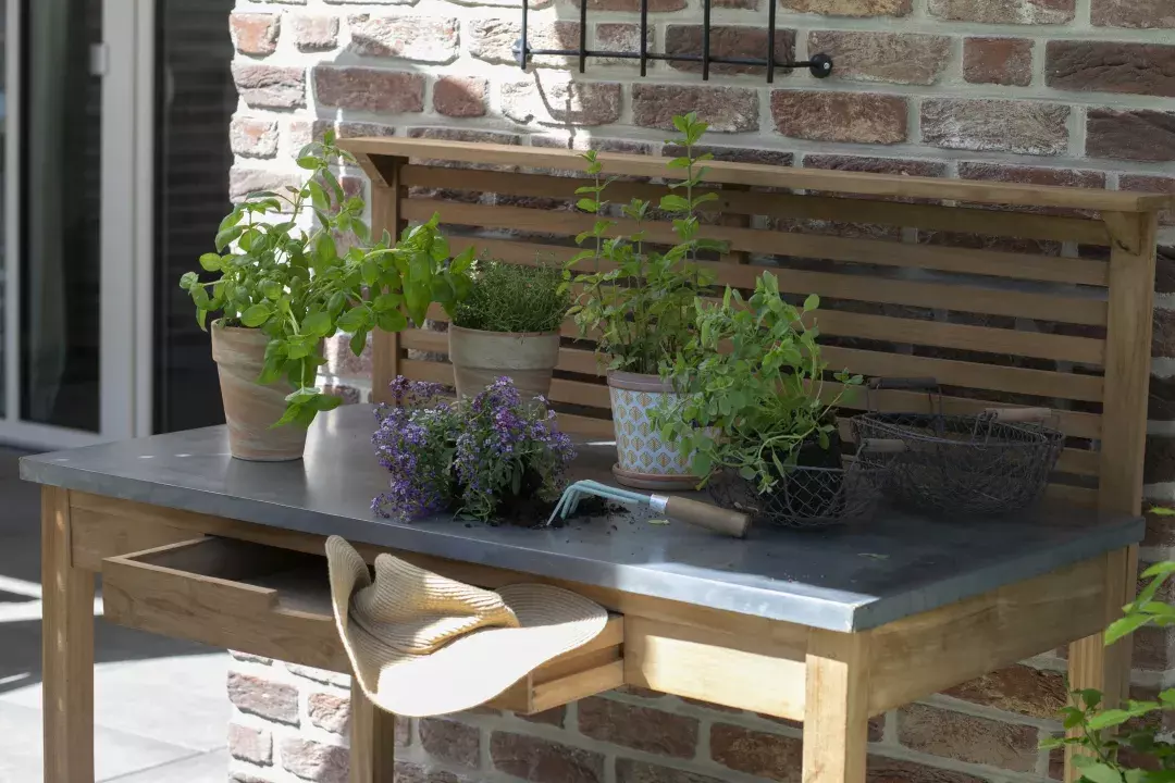 • Teak Pflanztisch Hampton mit ca. 115 cm Breite bietet viel Platz für Gartenarbeiten