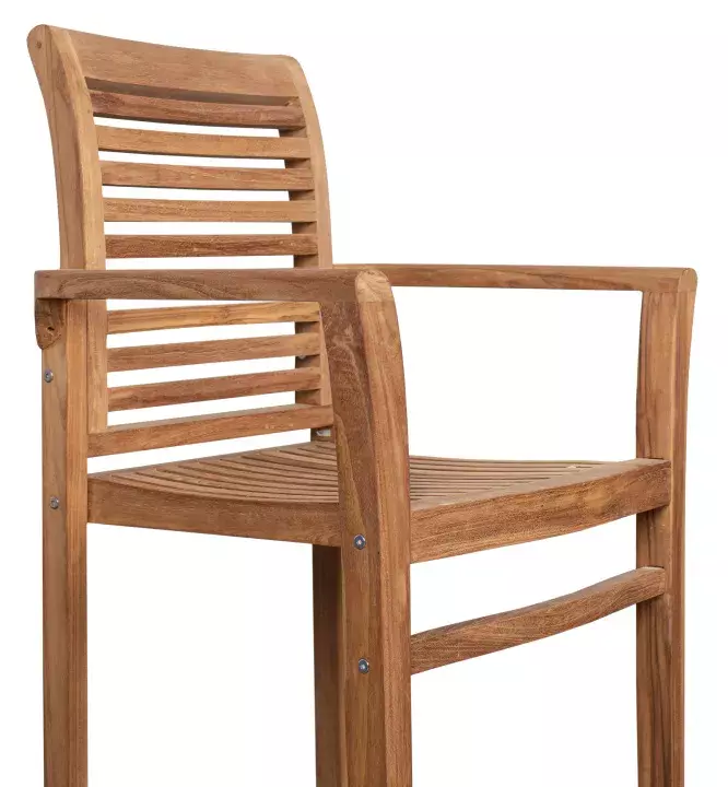 Die ergonomisch geformte Rücken- und Sitzfläche sorgt für angenehmen Sitzkomfort – perfekt für lange Abende im Garten oder gesellige Runden auf der Terrasse. Durch seine Stapelfunktion lässt sich der Stapelsessel Derby Teak mit Armlehnen platzsparend verstauen, wenn einmal mehr Fläche benötigt wird oder mehrere Exemplare genutzt werden.