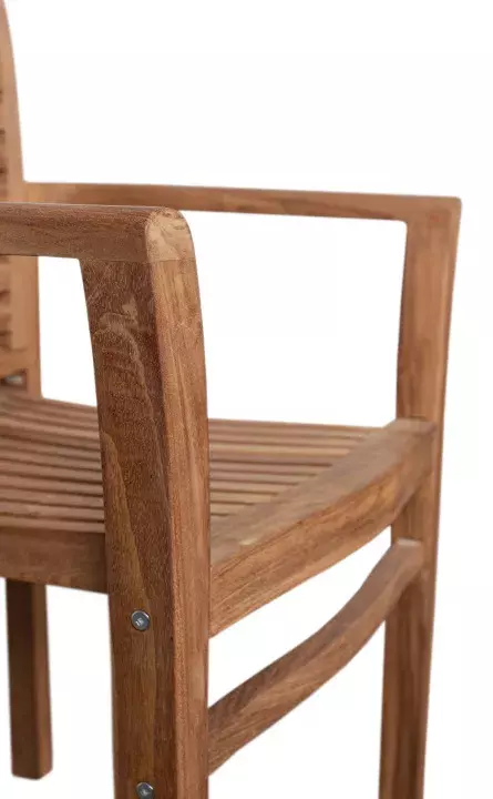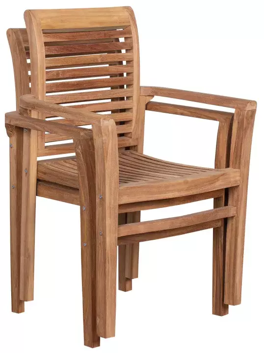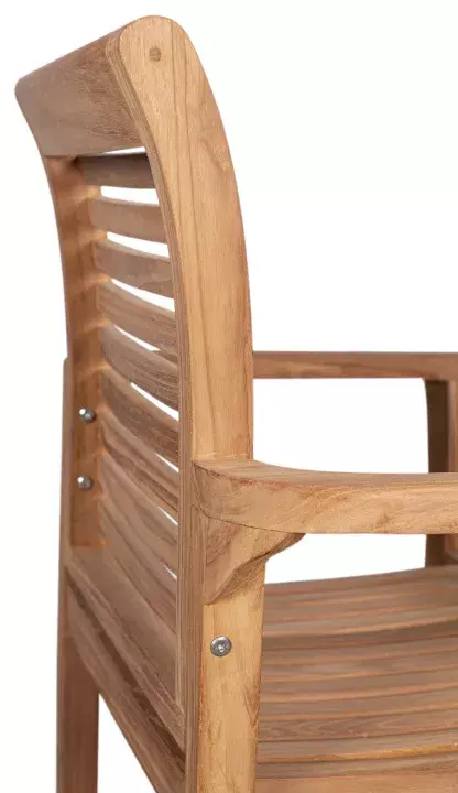 Erleben Sie den Stapelsessel Derby Teak mit Armlehnen als wertigen Lieblingsplatz unter freiem Himmel.