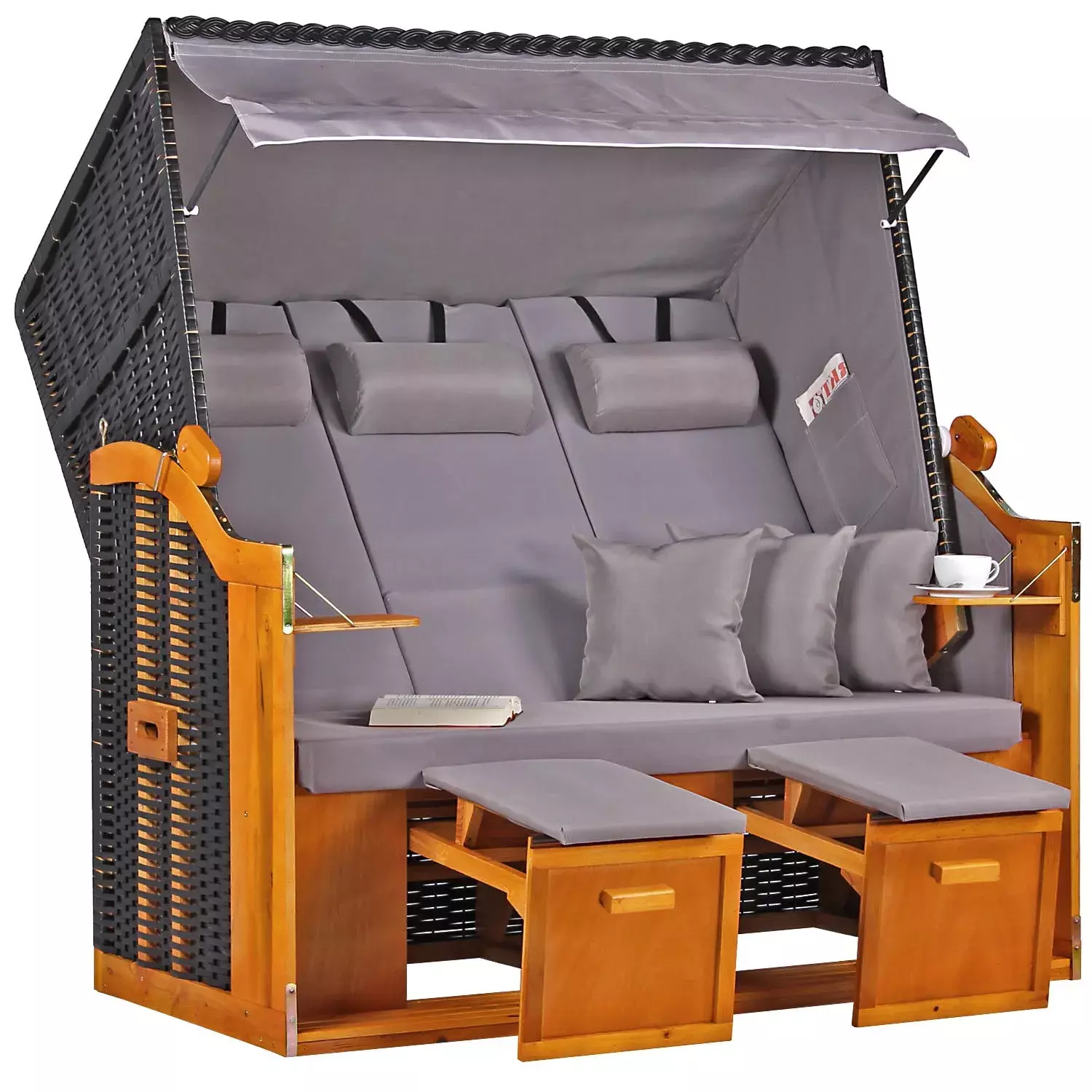 Strandkorb Baltic Dreisitzer PE schwarz Dessin Royal Anthrazit