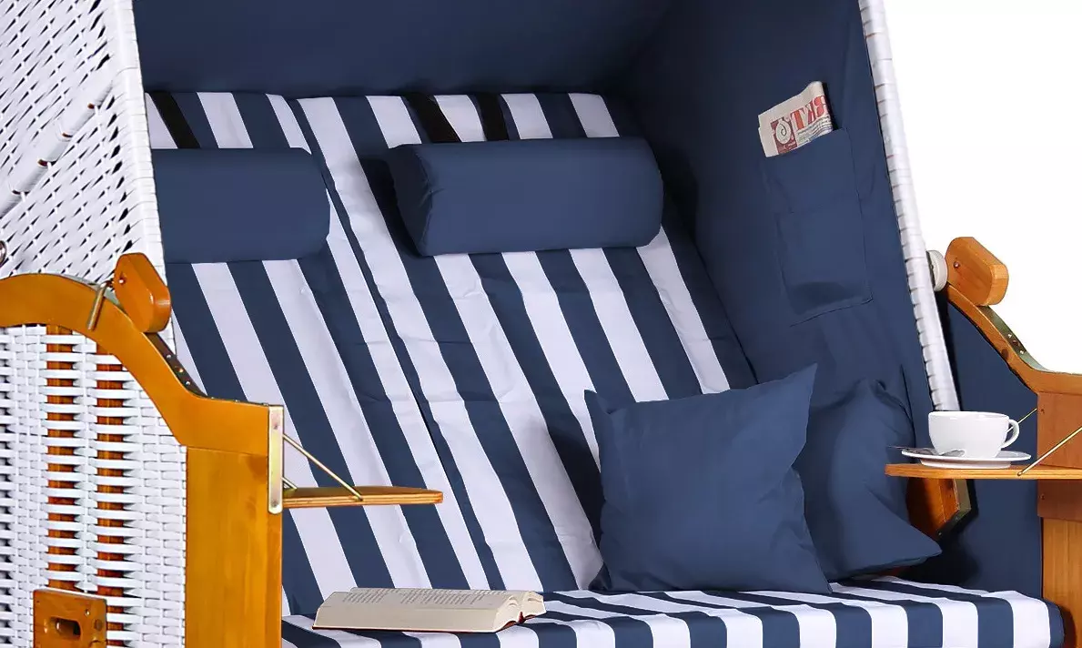 Die Strandkorbserie Baltic überzeugt nicht nur durch die verwendeten Materialen, sondern auch durch die vielen durchdachten Extras, die bereits im Preis inbegriffen sind. Der Strandkorb Baltic verfügt über ausziehbare Fußstützen mit bequemer Polsterauflage im Kissendessin, einen mehrfach verstellbaren Oberkorb und bequeme Rücken- und Sitzkissen. Zudem liefern wir Ihnen den Strandkorb Baltic inklusive passender Wurf- und Nackenkissen. Die Nackenkissen können Sie zudem in der Höhe verstellen, sodass Sie immer die richtige Sitzposition haben, egal ob beim Lesen, Kaffee trinken oder bei einem entspannten Mittagsschläfchen. Die Bezüge der Wurf- und Nackenkissen verfügen über Reißverschlüsse und lassen sich in der Waschmaschine reinigen. Alle Polsterbezüge sind aus strapzierfähigem und schmutzabweisendem Markisenstoff, der sich vor allem bei häufiger Benutzung bewährt hat. Doch auch an das Verstauen von Zeitung und Mobiltelefon wurde gedacht. Die beiden im Kissendesign angefertigten Taschen an den Innenseiten bieten Ihnen Platz für alle was Sie momentan nicht benötigen. Kurzum, der Strandkorb Baltic hat alles zu bieten, was ein klassischer Strandkorb benötigt - Überzeugen Sie sich selbst!