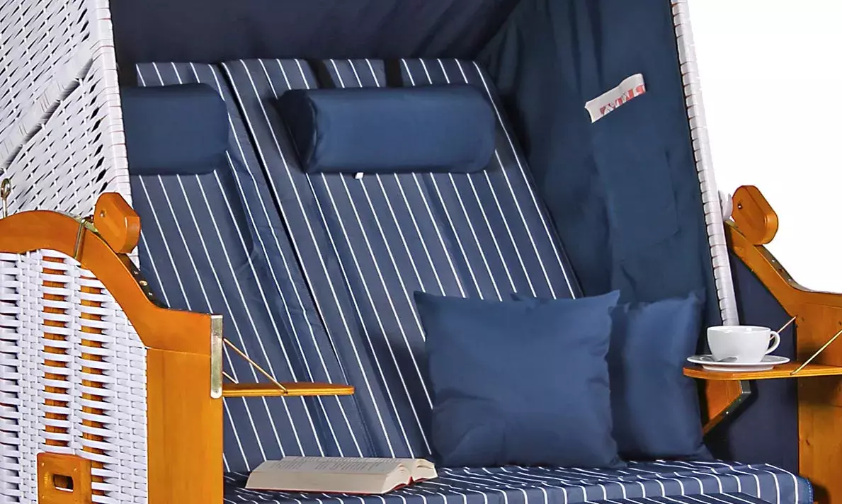 Der Strandkorb Baltic in strahlendem Weiß mit einem ansprechenden Royal-Blau Design verleiht jedem Garten oder jeder Terrasse einen Hauch von Eleganz und Stil. Dieser stilvolle Strandkorb wird schnell zum bevorzugten Rückzugsort, der einlädt, die warmen Tage im Freien ausgiebig zu genießen. Ob beim Entspannen mit einem guten Buch, beim Genießen von kühlen Getränken oder beim einfach nur Relaxen unter dem Sonnenlicht – dieser Strandkorb bietet den idealen Ort für unvergessliche Momente.