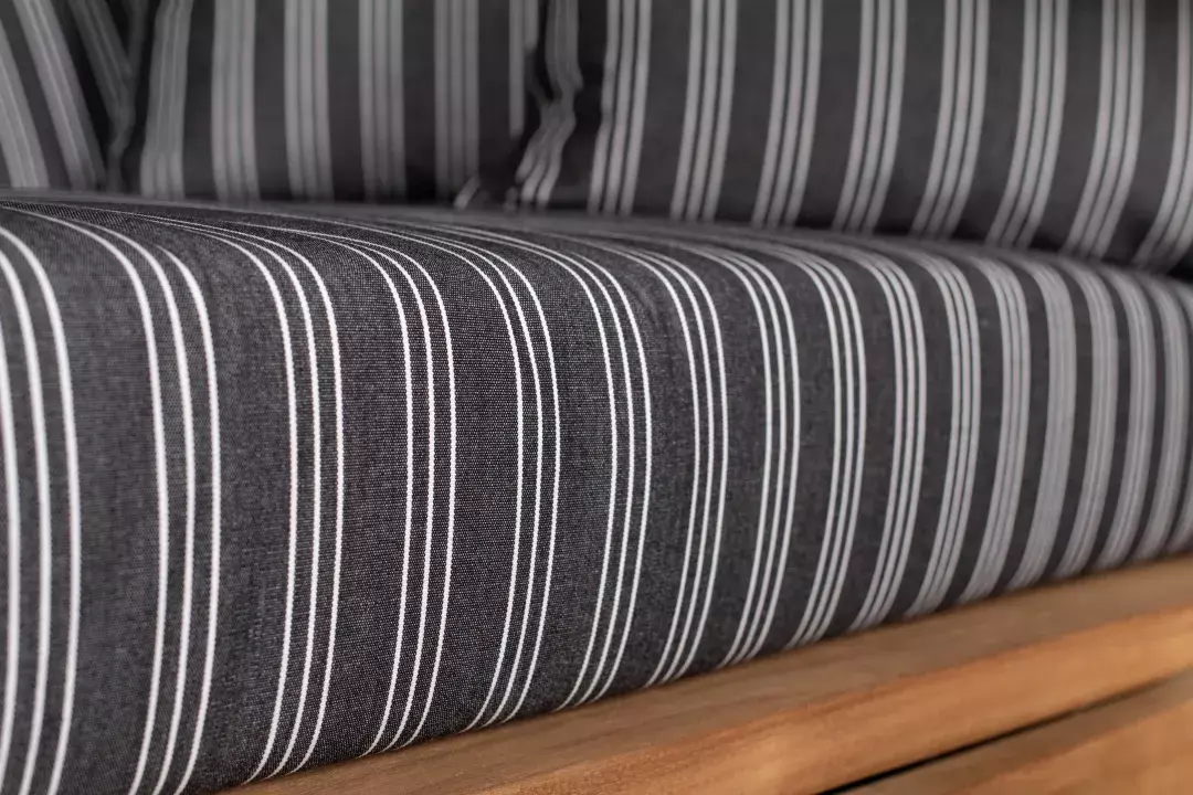 | Kissenausstattung: | 2x Fußkissen, 2x Nackenkissen, 2x Wurfkissen, 12 cm dicke Sitzpolsterung, Sitz- und Rückenpolster herausnehmbar und waschbar |