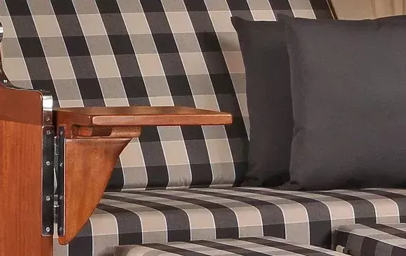 Dass für den Strandkorb Nordstrand verwendete Mahagoniholz überzeugt durch seinen edlen, rötlich-braunen Farbton, der dem Strandkorb seinen klassischen und maritimen Charakter verleiht. Zudem sorgt das massive Mahagoniholz für Standfestigkeit und Stabiltität und macht den Strandkorb Nordstrand zu einem hochwertigen Gartenmöbel. Die Verwendung von Mahagoniholz im Außenbereich hat eine lange Tradition. Das besonders harte und damit witterungsbeständige Holz wird von jeher sowohl im Schiffsbau als auch im Gartenbereich eingesetzt. Somit eignet es sich auch für die Herstellung von Strandkörben besonders gut. Um das Mahagoniholz in seiner einzigartigen Optik zu erhalten, empfehlen wir die regelmäßige Lackierung des Holzes mit einem offenporigen PU-Lack. Diese Pflege macht den Strandkorb Nordstrand zu einem absoluten Highlight in Ihrem Garten oder auf Ihrer Terrasse!
