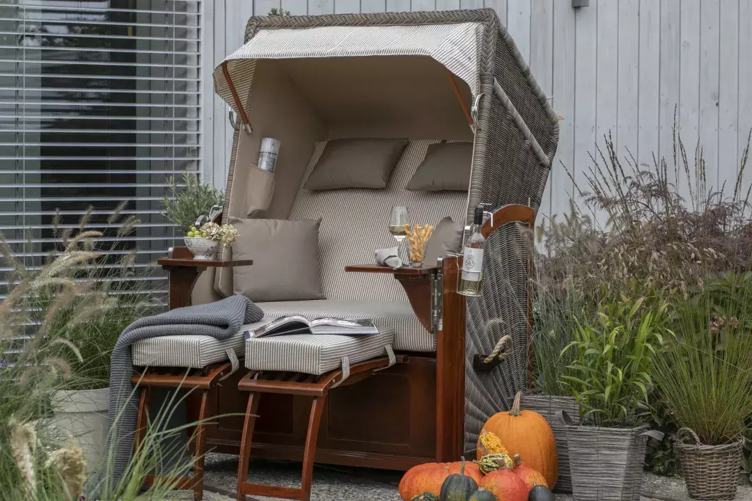 Der Strandkorb Nordstrand Mahagoni - luxuriöses Outdoor-Möbel in raffinierter Materialkomposition