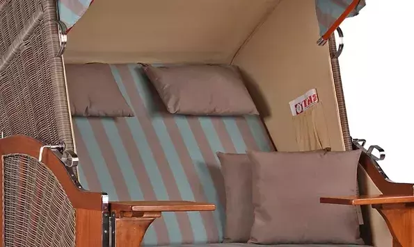 Dass für den Strandkorb Nordstrand verwendete Mahagoniholz überzeugt durch seinen edlen, rötlich-braunen Farbton, der dem Strandkorb seinen klassischen und maritimen Charakter verleiht. Zudem sorgt das massive Mahagoniholz für Standfestigkeit und Stabiltität und macht den Strandkorb Nordstrand zu einem hochwertigen Gartenmöbel. Die Verwendung von Mahagoniholz im Außenbereich hat eine lange Tradition. Das besonders harte und damit witterungsbeständige Holz wird von jeher sowohl im Schiffsbau als auch im Gartenbereich eingesetzt. Somit eignet es sich auch für die Herstellung von Strandkörben besonders gut. Um das Mahagoniholz in seiner einzigartigen Optik zu erhalten, empfehlen wir die regelmäßige Lackierung des Holzes mit einem offenporigen PU-Lack. Diese Pflege macht den Strandkorb Nordstrand zu einem absoluten Highlight in Ihrem Garten oder auf Ihrer Terrasse!
