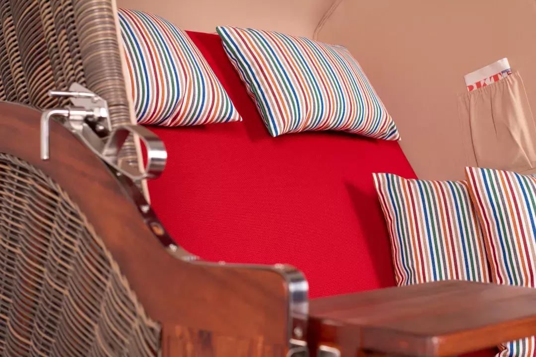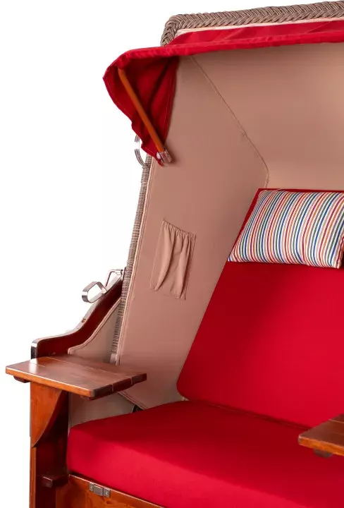 Dass für den Strandkorb Nordstrand verwendete Mahagoniholz überzeugt durch seinen edlen, rötlich-braunen Farbton, der dem Strandkorb seinen klassischen und maritimen Charakter verleiht. Zudem sorgt das massive Mahagoniholz für Standfestigkeit und Stabiltität und macht den Strandkorb Nordstrand zu einem hochwertigen Gartenmöbel. Die Verwendung von Mahagoniholz im Außenbereich hat eine lange Tradition. Das besonders harte und damit witterungsbeständige Holz wird von jeher sowohl im Schiffsbau als auch im Gartenbereich eingesetzt. Somit eignet es sich auch für die Herstellung von Strandkörben besonders gut. Um das Mahagoniholz in seiner einzigartigen Optik zu erhalten, empfehlen wir die regelmäßige Lackierung des Holzes mit einem offenporigen PU-Lack. Diese Pflege macht den Strandkorb Nordstrand zu einem absoluten Highlight in Ihrem Garten oder auf Ihrer Terrasse!