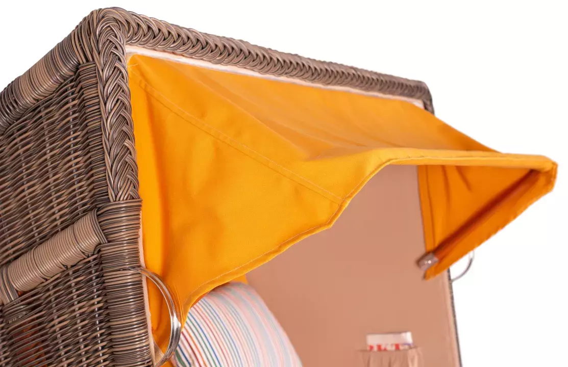 Die aufwendig gestaltete Flechtung des Strandkorbes wird in liebevoller Handarbeit für jeden Strandkorb einzeln erstellt. Die interessante Sonnenflechtung des Seitenteils und die akkurate Verarbeitung der Oberkorbs zeugen von hohem handwerklichem Geschick und verleihen dem Strandkorb Nordstrand sein klassisches Design. Das verwendete PE (Polyethylen)-Geflecht ist ideal für den Einsatz im Freien, denn es ist robust und temperaturbeständig, besonders auch bei hohen Temperaturschwankungen. Zudem ist die glatte Oberfläche des Geflechtes schmutz- und witterungsabweisend. Weitere Vorteile wie UV-Beständigkeit und Farbechtheit machen Ihren Strandkorb Nordstrand zu einem langjährigen Begleiter, an dem Sie lange Ihre Freude haben werden!