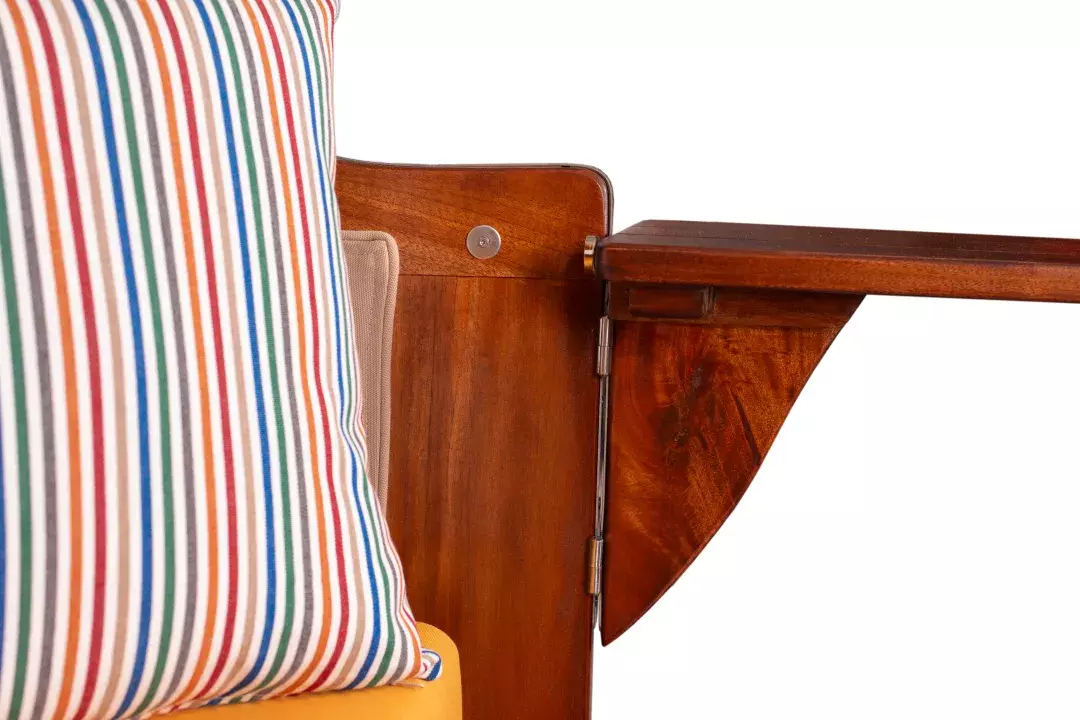 Dass für den Strandkorb Nordstrand verwendete Mahagoniholz überzeugt durch seinen edlen, rötlich-braunen Farbton, der dem Strandkorb seinen klassischen und maritimen Charakter verleiht. Zudem sorgt das massive Mahagoniholz für Standfestigkeit und Stabiltität und macht den Strandkorb Nordstrand zu einem hochwertigen Gartenmöbel. Die Verwendung von Mahagoniholz im Außenbereich hat eine lange Tradition. Das besonders harte und damit witterungsbeständige Holz wird von jeher sowohl im Schiffsbau als auch im Gartenbereich eingesetzt. Somit eignet es sich auch für die Herstellung von Strandkörben besonders gut. Um das Mahagoniholz in seiner einzigartigen Optik zu erhalten, empfehlen wir die regelmäßige Lackierung des Holzes mit einem offenporigen PU-Lack. Diese Pflege macht den Strandkorb Nordstrand zu einem absoluten Highlight in Ihrem Garten oder auf Ihrer Terrasse!