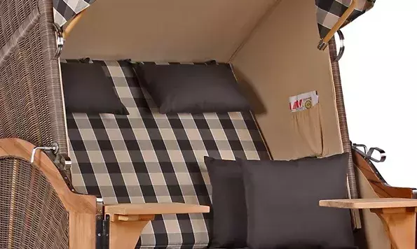 In dem komfortablen und geräumigen Volllieger der Serie Nordstrand können Sie abschalten und vom nächsten Urlaub am Meer träumen. Edles Teakholz und der charakteristische Rattan-Look verleihen diesem stilvollen Strandkorb seinen natürlichen Charme. Sorgfältige und filigrane Handarbeit sowie hochwertige Materialien wie das robuste PE-Geflecht zeichnen den Strandkorb Nordstrand in besonderer Weise aus. Damit der Strandkorb perfekt auf Ihr Outdoor-Design abgestimmt ist, können Sie die Wechselpolster nach Ihren persönlichen Wünschen auswählen. Die Strandkörbe sind mit extra-dicken Kissen und Polstern versehen, die Ihnen zu jeder Jahreszeit gemütliche Stunden bescheren. Viele durchdachte Details und ein sorgfältig abgestimmtes Zubehör runden das Angebot für diesen erstklassigen Strandkorb ab.