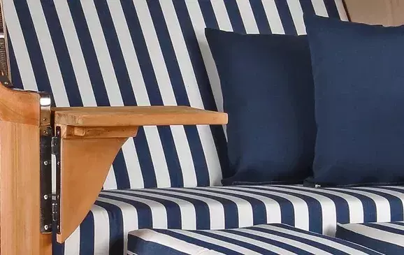 Neben dem massiven Teakholz und beständigen PE-Geflecht verwenden wir für unseren Strandkorb Nordstrand ausschließlich hochwertige Edelstahlbeschläge aus V2A-Edelstahl. Diese Beschläge kommen bei der Befestigung der Bistrotische, der Verstärkung der unteren Ecken und beim Feststellmechanismus der Verstellgriffe zum Einsatz. Doch auch die verwendeten Schrauben, sowie die Haken zur Befestigung der abnehmbaren Fußstützen sind bewusst aus Edelstahl gewählt. Komplettiert wird der Strandkorb Nordstrand durch eine Vielzahl durchdachter Extras. Das großzügige Staufach unter der Sitzbank, die beiden Zeitungstaschen und die großen schwenkbaren Bistrotische sind praktische Details, die Ihre Auszeit im Strandkorb Nordstrand perfekt machen. Zudem sorgen extradicke Polster für einen bequemen Sitzkomfort. Der Strandkorb Nordstrand wird grundsätzlich mit farblich abgestimmten Wurf- und Nackenkissen geliefert, die sich variabel einsetzen lassen. Somit lässt der Strandkorb Nordstrand keine Wünsche offen - lassen Sie sich von unserer vielfältigen Auswahl inspirieren!