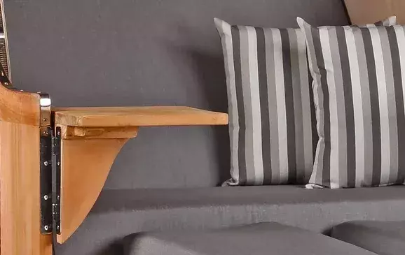 | Kissenausstattung: | 2x Fußkissen 12 cm dick, 2x Nackenkissen, 2x Wurfkissen, Sitz- und Rückenpolster herausnehmbar und waschbar |