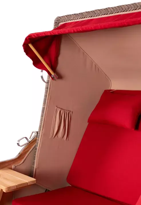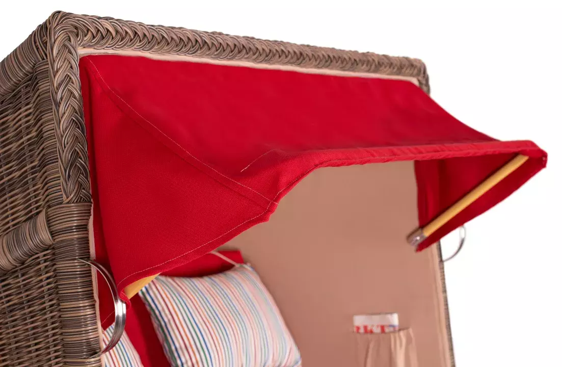 Die aufwendig gestaltete Flechtung des Strandkorbes wird in liebevoller Handarbeit für jeden Strandkorb einzeln erstellt. Die interessante Sonnenflechtung des Seitenteils und die akkurate Verarbeitung der Oberkorbs zeugen von hohem handwerklichem Geschick und verleihen dem Strandkorb Nordstrand sein klassisches Design. Das verwendete PE (Polyethylen)-Geflecht ist ideal für den Einsatz im Freien, denn es ist robust und temperaturbeständig, besonders auch bei hohen Temperaturschwankungen. Zudem ist die glatte Oberfläche des Geflechtes schmutz- und witterungsabweisend. Weitere Vorteile wie UV-Beständigkeit und Farbechtheit machen Ihren Strandkorb Nordstrand zu einem langjährigen Begleiter, an dem Sie lange Ihre Freude haben werden!