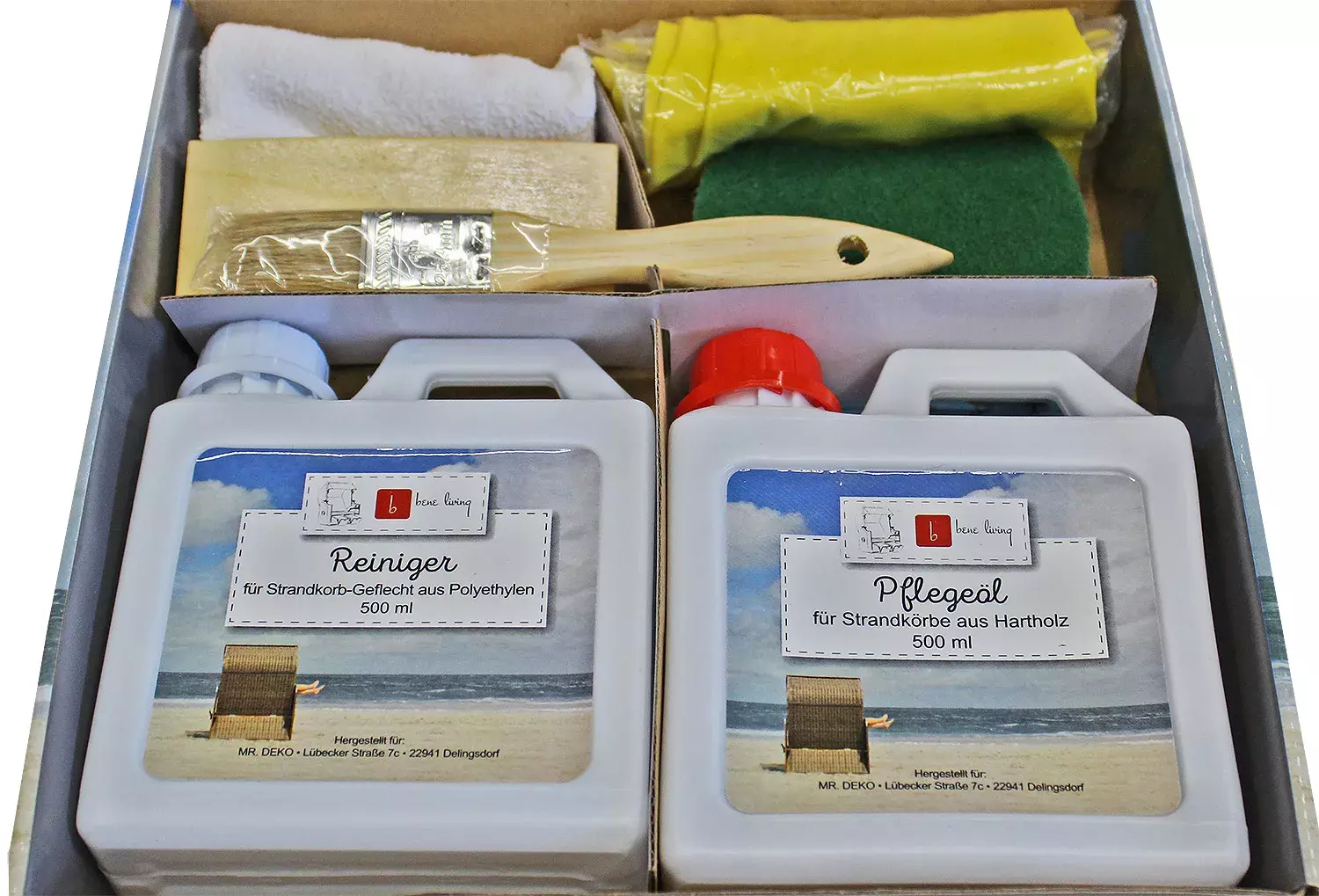 Auch ein Strandkorb braucht Pflege, um in Form zu bleiben. Mit diesem Pflegeset für alle Strandkörbe aus Hartholz mit Polyethylen Geflecht (PE) können Sie Ihren Strandkorb reinigen und pflegen. Durch die regelmäßige Pflege Ihres Strandkorbes erreichen Sie eine lange Lebensdauer.