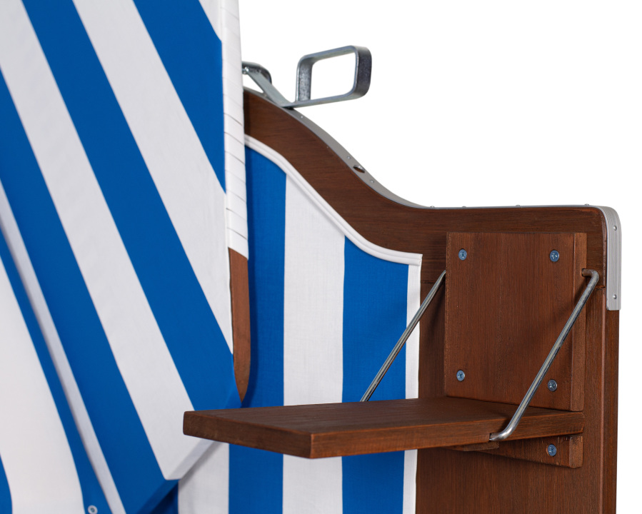 Dank der seewasserbeständigen Eigenschaften des Mahagoniholzes können Sie den Strandkorb Profi Ostsee Fehmarn bedenkenlos an der Küste verwenden. Das klassische Design mit blau-weißen Blockstreifen verleiht Ihrem Outdoor-Bereich eine maritime Note. Die höhenverstellbaren und ausziehbaren Fußstützen bieten Ihnen zusätzlichen Komfort, damit Sie entspannt die Sonne genießen können.