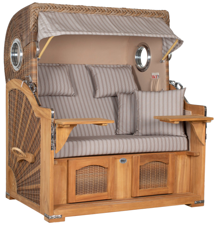 Strandkorb Rantum Grande Bullauge Teak PE Banana Dessin 501