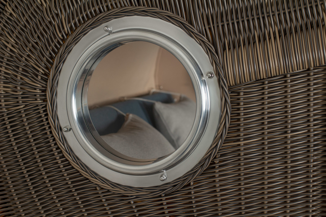 Strandkorb Rantum Grande Bullauge Teak PE Grey Dessin 593