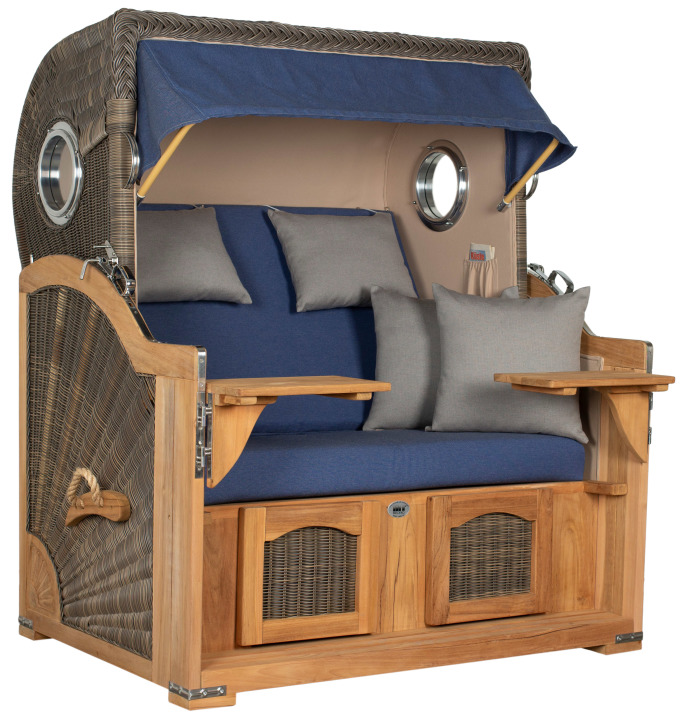 Strandkorb Rantum Grande Bullauge Teak PE Grey Dessin 595