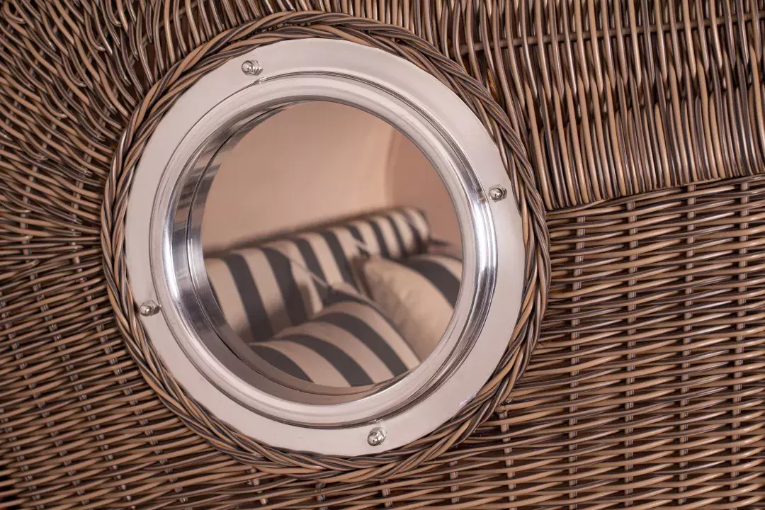 Die aufwendig gestaltete Flechtung des Strandkorbes wird in liebevoller Handarbeit für jeden Strandkorb einzeln erstellt. Die interessante Sonnenflechtung des Seitenteils und die formschöne Einbindung des Bullauges zeugen von hohem handwerklichem Geschick und verleihen dem Strandkorb Rantum ein außergewöhnliches und einzigartiges Design. Das verwendete PE (Polyethylen)-Geflecht ist ideal für den Einsatz im Freien, denn es ist robust und temperaturbeständig, besonders auch bei hohen Temperaturschwankungen. Zudem ist die glatte Oberfläche des Geflechtes schmutz- und witterungsabweisend. Weitere Vorteile wie UV-Beständigkeit und Farbechtheit machen Ihren Strandkorb Rantum zu einem langjährigen Begleiter, an dem Sie lange Ihre Freude haben werden!