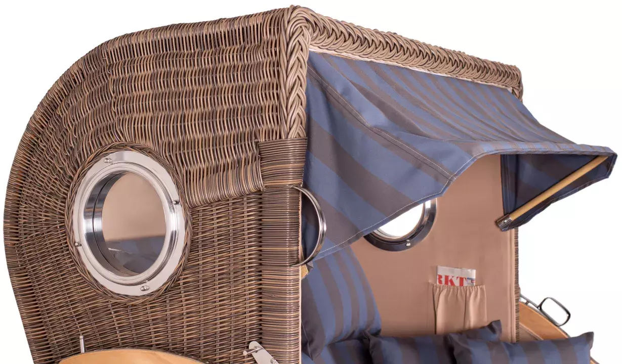 Die aufwendig gestaltete Flechtung des Strandkorbes wird in liebevoller Handarbeit für jeden Strandkorb einzeln erstellt. Die interessante Sonnenflechtung des Seitenteils und die formschöne Einbindung des Bullauges zeugen von hohem handwerklichem Geschick und verleihen dem Strandkorb Rantum ein außergewöhnliches und einzigartiges Design. Das verwendete PE (Polyethylen)-Geflecht ist ideal für den Einsatz im Freien, denn es ist robust und temperaturbeständig, besonders auch bei hohen Temperaturschwankungen. Zudem ist die glatte Oberfläche des Geflechtes schmutz- und witterungsabweisend. Weitere Vorteile wie UV-Beständigkeit und Farbechtheit machen Ihren Strandkorb Rantum zu einem langjährigen Begleiter, an dem Sie lange Ihre Freude haben werden!