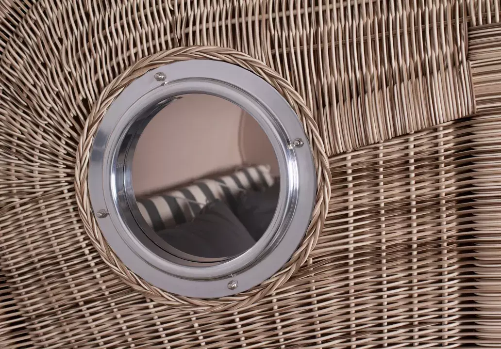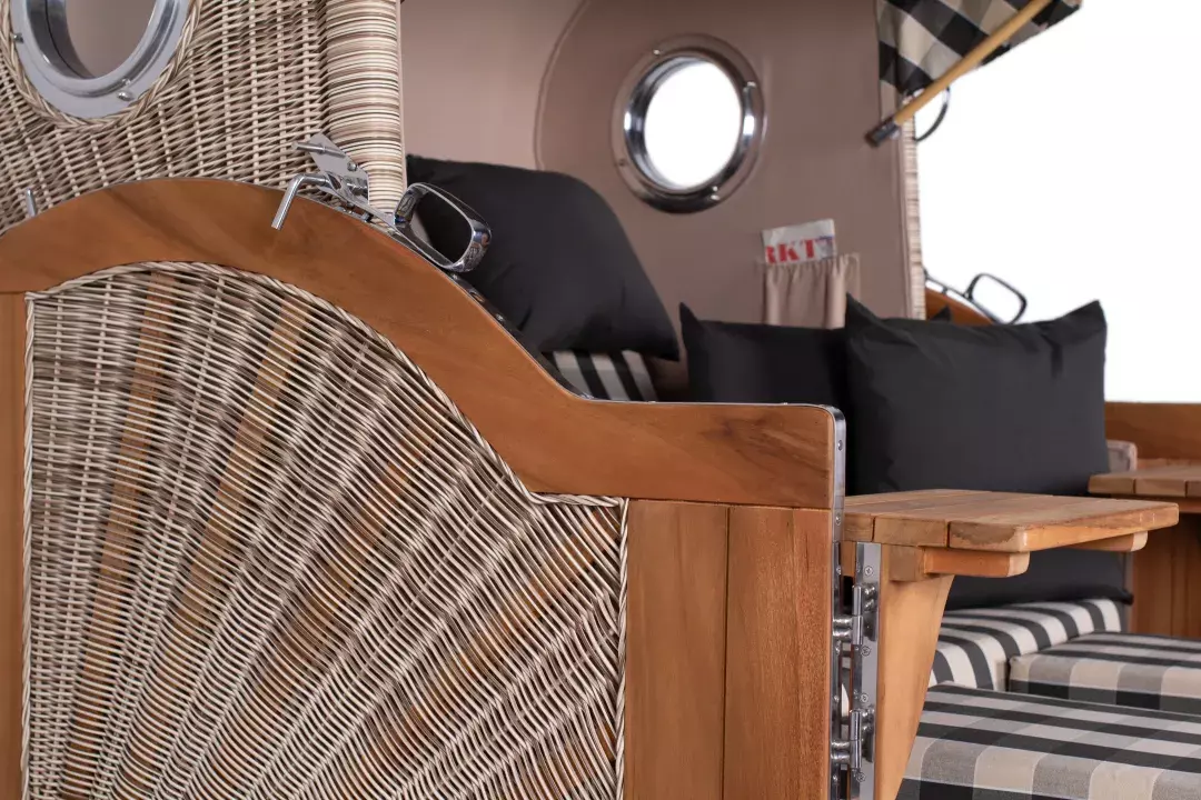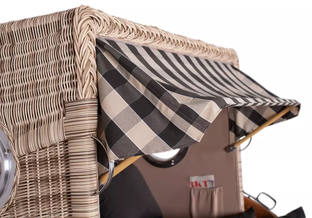 Die aufwendig gestaltete Flechtung des Strandkorbes wird in liebevoller Handarbeit für jeden Strandkorb einzeln erstellt. Die interessante Sonnenflechtung des Seitenteils und die formschöne Einbindung des Bullauges zeugen von hohem handwerklichem Geschick und verleihen dem Strandkorb Rantum ein außergewöhnliches und einzigartiges Design. Das verwendete PE (Polyethylen)-Geflecht ist ideal für den Einsatz im Freien, denn es ist robust und temperaturbeständig, besonders auch bei hohen Temperaturschwankungen. Zudem ist die glatte Oberfläche des Geflechtes schmutz- und witterungsabweisend. Weitere Vorteile wie UV-Beständigkeit und Farbechtheit machen Ihren Strandkorb Rantum zu einem langjährigen Begleiter, an dem Sie lange Ihre Freude haben werden!