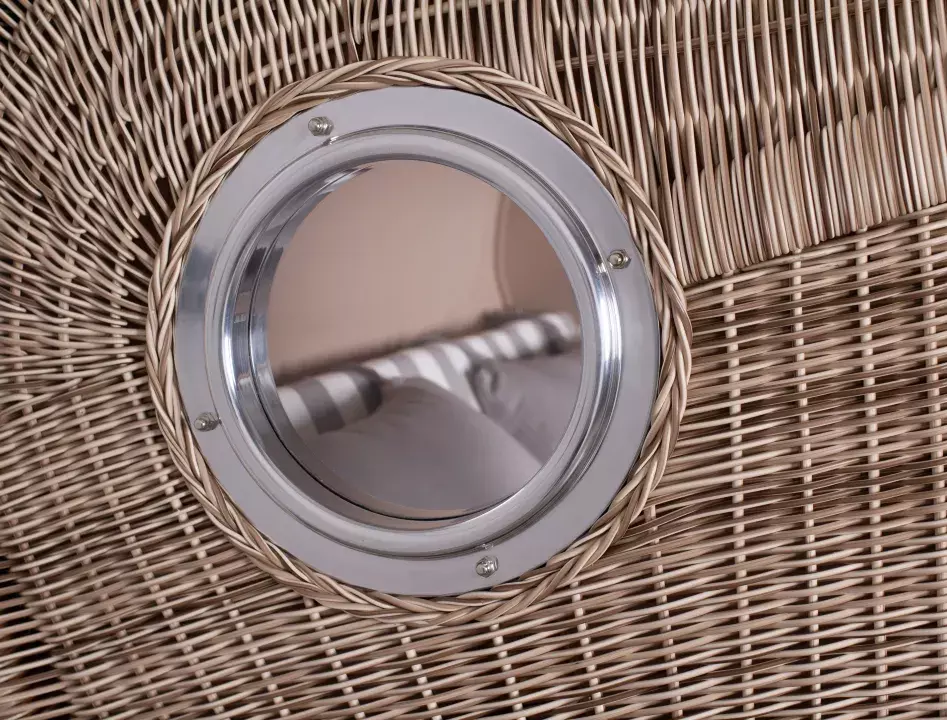 - Bullauge aus hochglänzendem Aluminium mit Sicherheitsglas auf jeder Seite