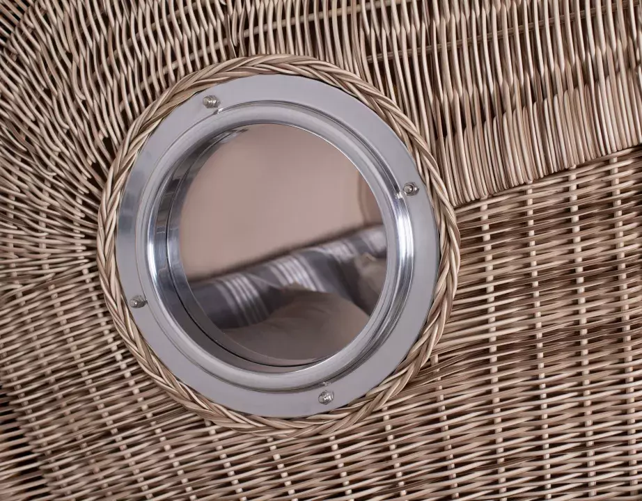 - Bullauge aus hochglänzendem Aluminium mit Sicherheitsglas auf jeder Seite
