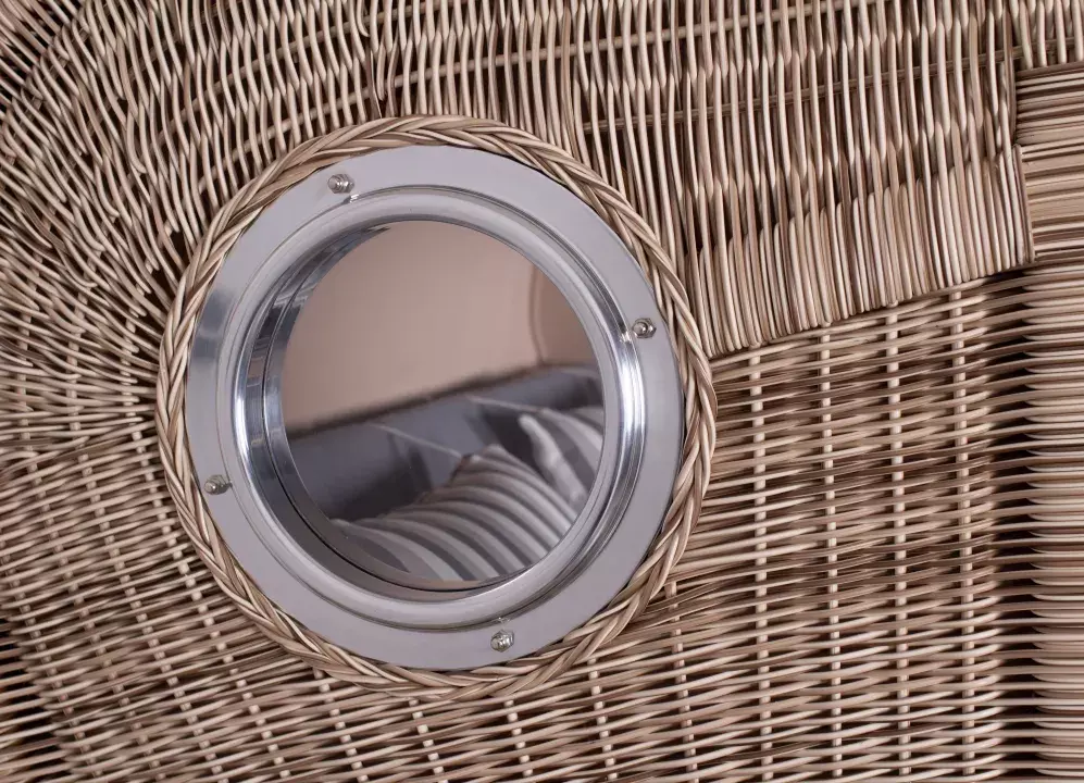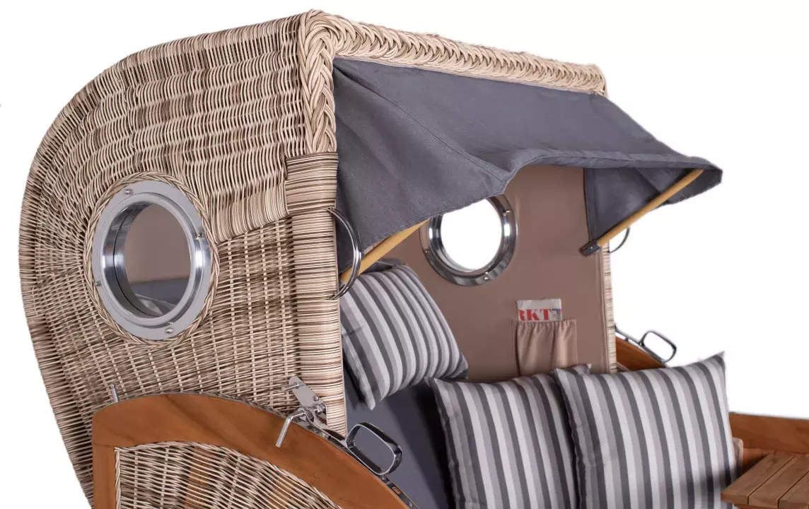 Die aufwendig gestaltete Flechtung des Strandkorbes wird in liebevoller Handarbeit für jeden Strandkorb einzeln erstellt. Die interessante Sonnenflechtung des Seitenteils und die formschöne Einbindung des Bullauges zeugen von hohem handwerklichem Geschick und verleihen dem Strandkorb Rantum ein außergewöhnliches und einzigartiges Design. Das verwendete PE (Polyethylen)-Geflecht ist ideal für den Einsatz im Freien, denn es ist robust und temperaturbeständig, besonders auch bei hohen Temperaturschwankungen. Zudem ist die glatte Oberfläche des Geflechtes schmutz- und witterungsabweisend. Weitere Vorteile wie UV-Beständigkeit und Farbechtheit machen Ihren Strandkorb Rantum zu einem langjährigen Begleiter, an dem Sie lange Ihre Freude haben werden!