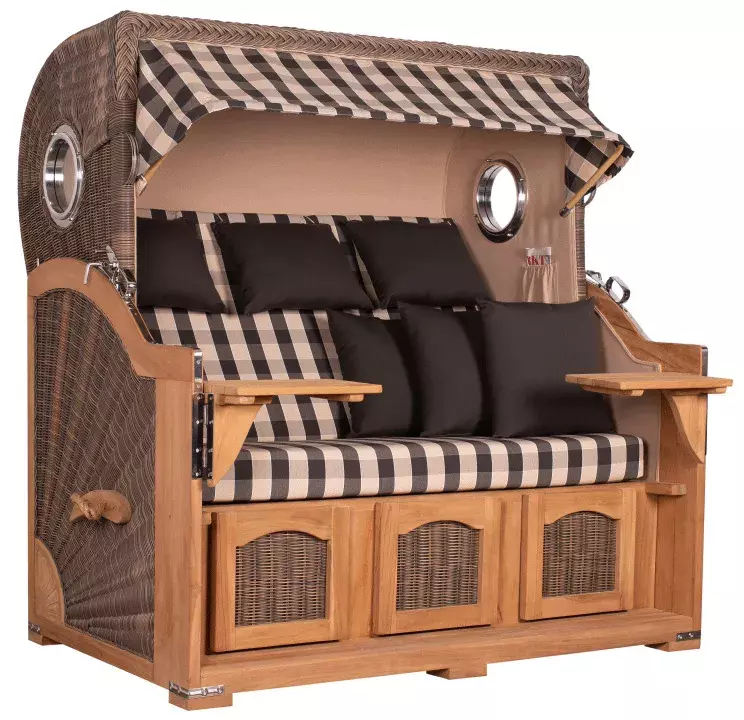 Strandkorb Rantum Grande XXL Teak Bullauge PE grey Dessin 505