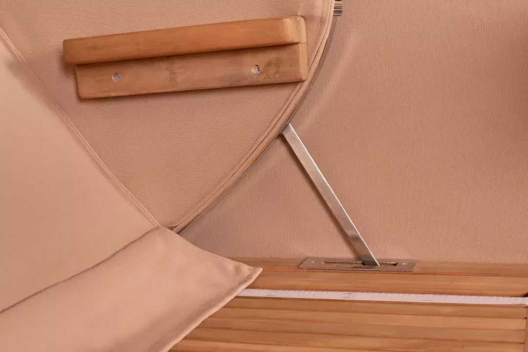 Der Strandkorb Rantum Grande XXL überzeugt durch die besonders hochwertig verarbeiteten edlen Materialien. Das massive Teakholz mit seinem warmen, hellen Farbton verleiht dem Strandkorb Rantum Grande XXL seinen ganz besonderen Charakter und macht ihn zu einem qualitativ hochwertigen Gartenmöbel. Teakholz ist ein besonders hochwertiges Holz und eignet sich aufgrund seiner natürlichen Eigenschaften hervorragend für Strandkörbe. Wir verwenden ausschließlich nachhaltig produziertes Plantagen-Teakholz. Aufgrund seines hohen Öl- und Kautschukanteils hat Teakholz einen natürlichen Verwitterungs- und Alterungsschutz. Egal ob Sie die im Laufe der Zeit entstehende silbrig-graue Patina lieben oder den natürlichen hellen Farbton bevorzugen, der sich durch regelmäßiges Ölen des Holzes erhalten lässt - unser Teakholz überzeugt durch seine Langlebigkeit und die hochwertige Optik!