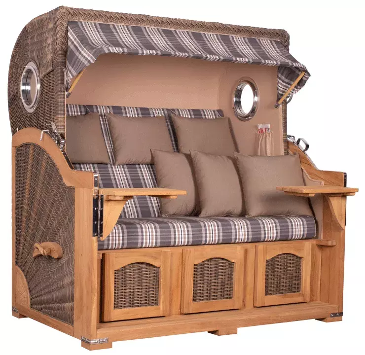 Strandkorb Rantum Grande XXL Teak Bullauge PE grey Dessin 522