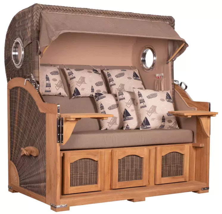 Strandkorb Rantum Grande XXL Teak Bullauge PE grey Dessin 540