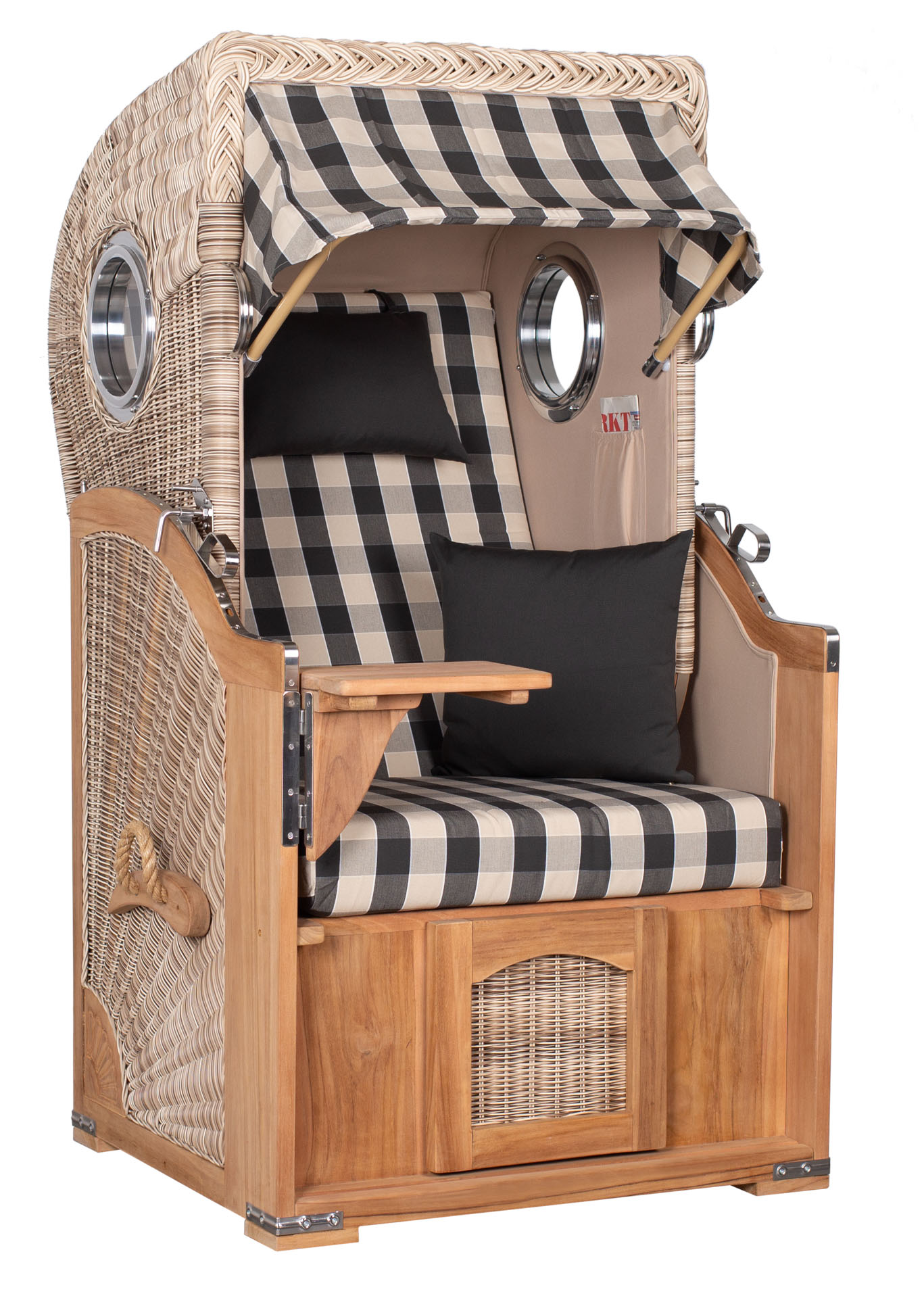 Selbst Verwöhnen im Luxus: Strandkorb Rantum Single Bullauge Teak PE Shell Dessin 505