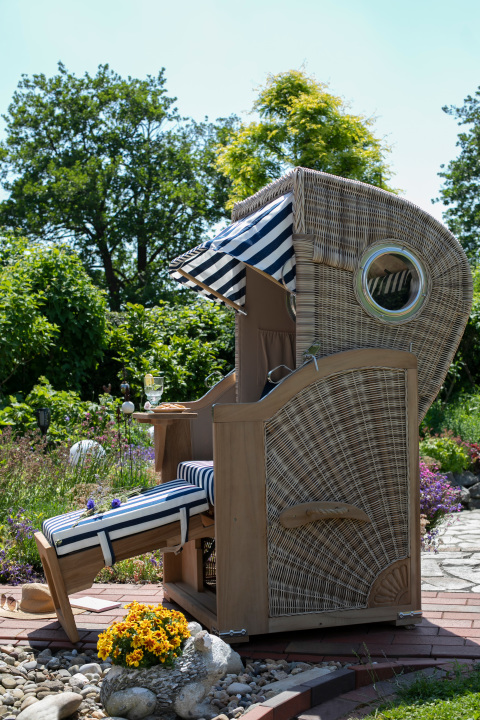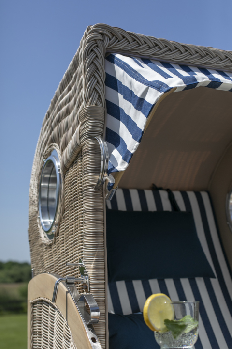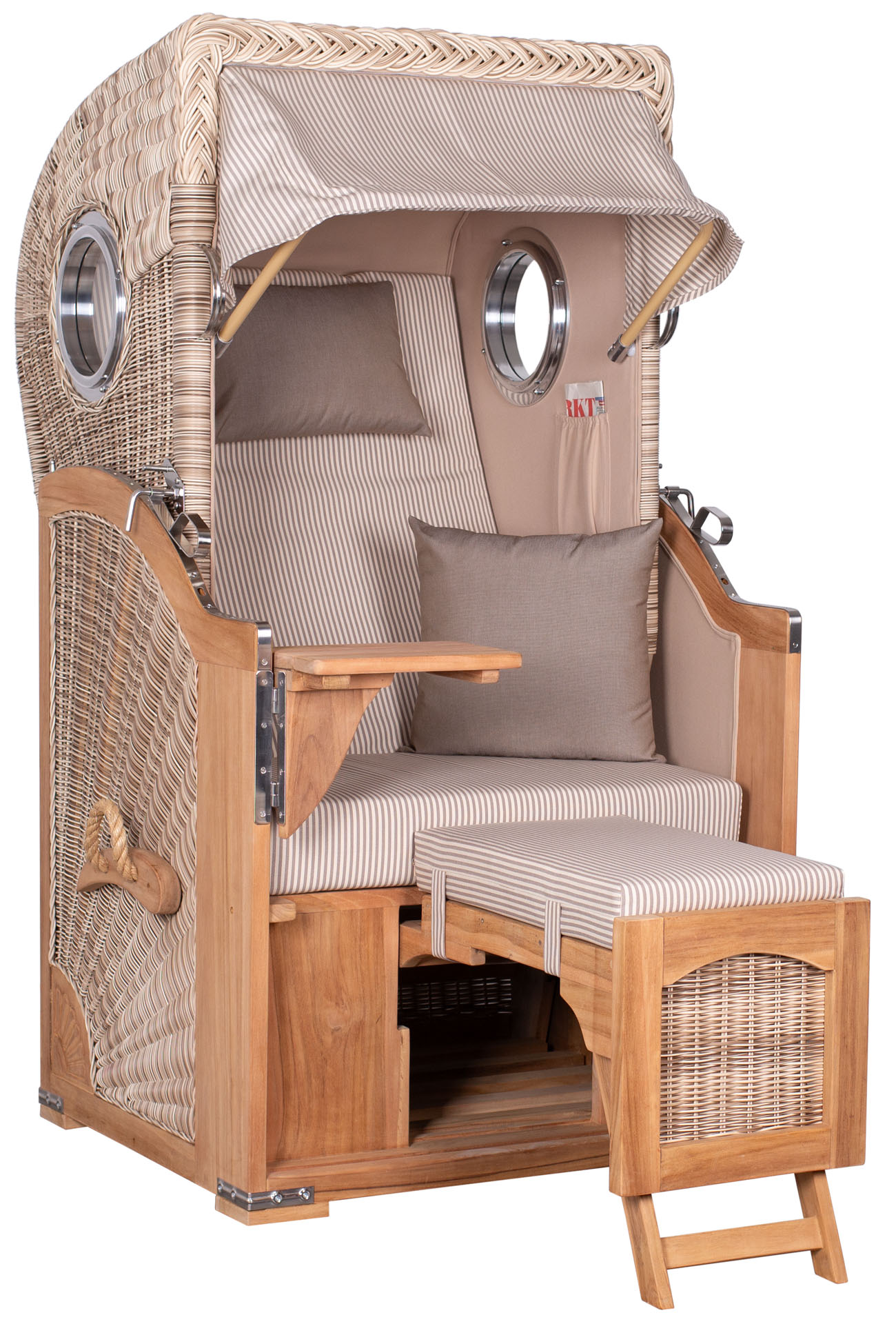 Strandkorb Rantum Single Bullauge Teak PE shell Dessin 518-KOMPLETTSET