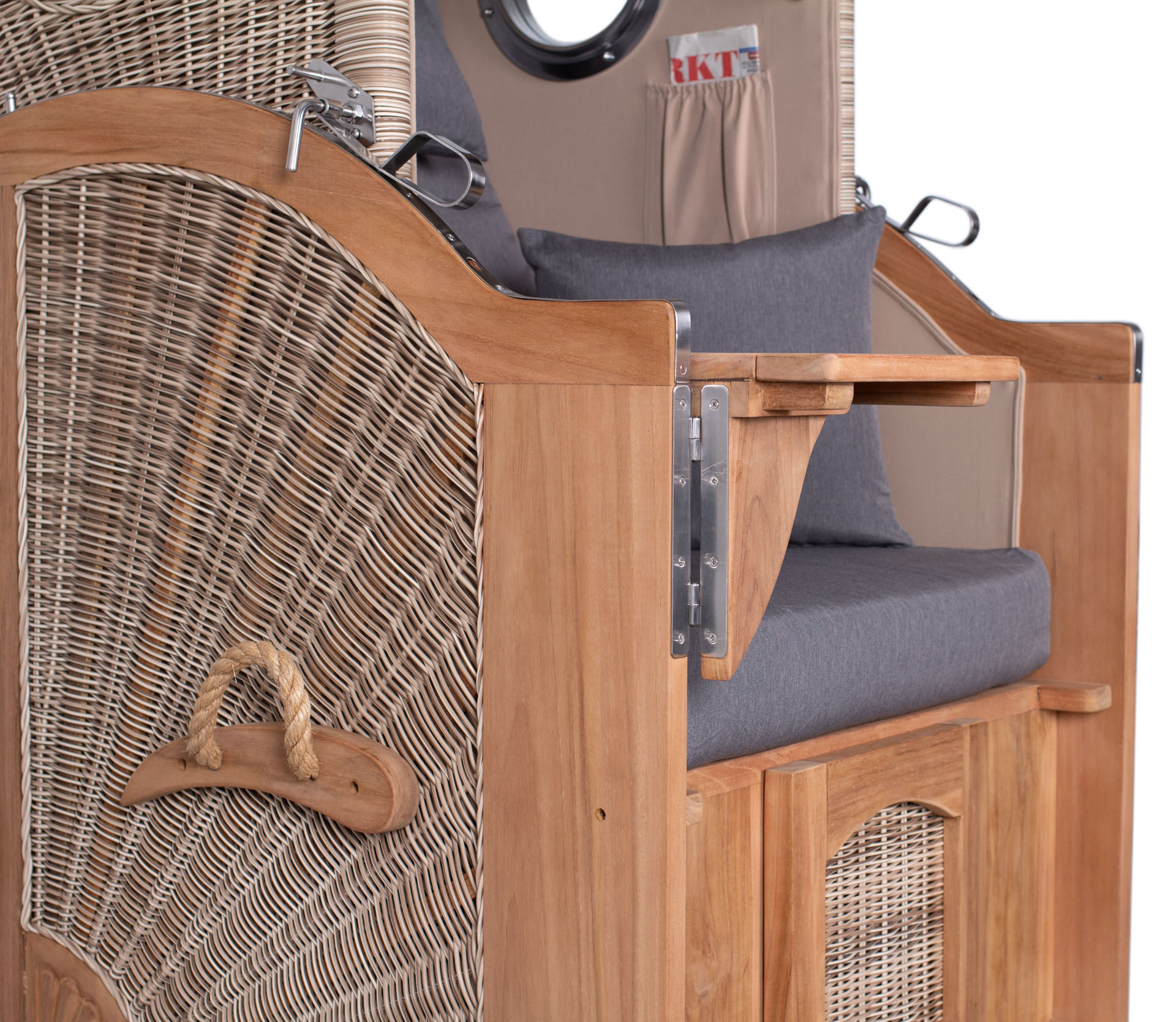 Strandkorb Rantum Single Bullauge Teak PE shell Dessin 551