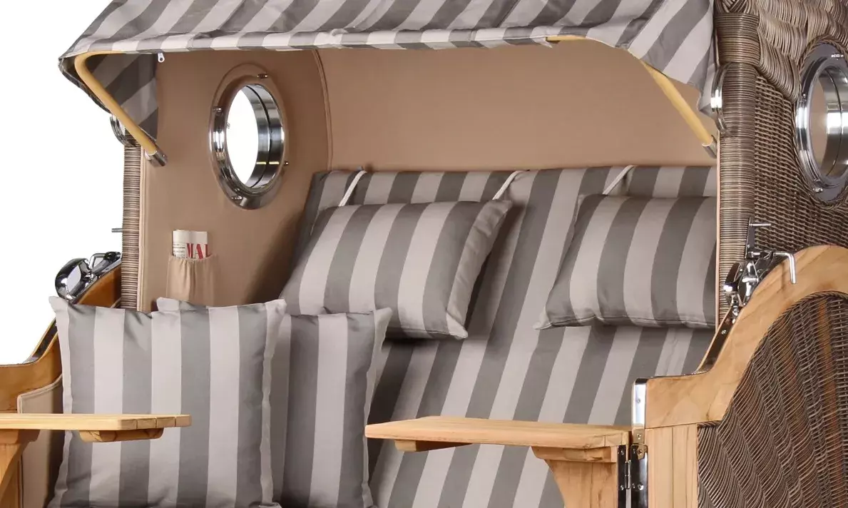 Die aufwendig gestaltete Flechtung des Strandkorbes wird in liebevoller Handarbeit für jeden Strandkorb einzeln erstellt. Die interessante Sonnenflechtung des Seitenteils und die formschöne Einbindung des Bullauges zeugen von hohem handwerklichem Geschick und verleihen dem Strandkorb Rantum ein außergewöhnliches und einzigartiges Design. Das verwendete PE (Polyethylen)-Geflecht ist ideal für den Einsatz im Freien, denn es ist robust und temperaturbeständig, besonders auch bei hohen Temperaturschwankungen. Zudem ist die glatte Oberfläche des Geflechtes schmutz- und witterungsabweisend. Weitere Vorteile wie UV-Beständigkeit und Farbechtheit machen Ihren Strandkorb Rantum zu einem langjährigen Begleiter, an dem Sie lange Ihre Freude haben werden!