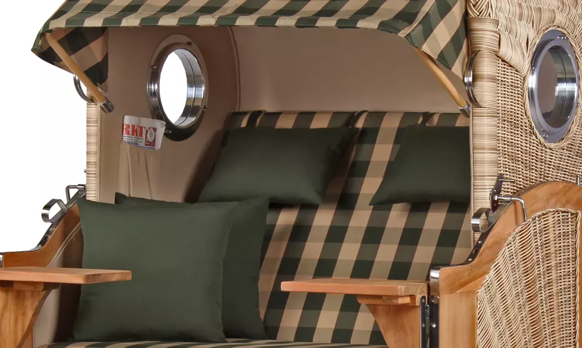 Die aufwendig gestaltete Flechtung des Strandkorbes wird in liebevoller Handarbeit für jeden Strandkorb einzeln erstellt. Die interessante Sonnenflechtung des Seitenteils und die formschöne Einbindung des Bullauges zeugen von hohem handwerklichem Geschick und verleihen dem Strandkorb Rantum ein außergewöhnliches und einzigartiges Design. Das verwendete PE (Polyethylen)-Geflecht ist ideal für den Einsatz im Freien, denn es ist robust und temperaturbeständig, besonders auch bei hohen Temperaturschwankungen. Zudem ist die glatte Oberfläche des Geflechtes schmutz- und witterungsabweisend. Weitere Vorteile wie UV-Beständigkeit und Farbechtheit machen Ihren Strandkorb Rantum zu einem langjährigen Begleiter, an dem Sie lange Ihre Freude haben werden!