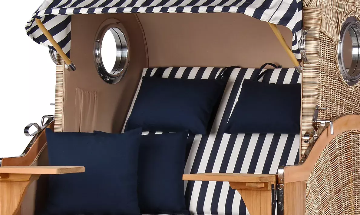 Die aufwendig gestaltete Flechtung des Strandkorbes wird in liebevoller Handarbeit für jeden Strandkorb einzeln erstellt. Die interessante Sonnenflechtung des Seitenteils und die formschöne Einbindung des Bullauges zeugen von hohem handwerklichem Geschick und verleihen dem Strandkorb Rantum ein außergewöhnliches und einzigartiges Design. Das verwendete PE (Polyethylen)-Geflecht ist ideal für den Einsatz im Freien, denn es ist robust und temperaturbeständig, besonders auch bei hohen Temperaturschwankungen. Zudem ist die glatte Oberfläche des Geflechtes schmutz- und witterungsabweisend. Weitere Vorteile wie UV-Beständigkeit und Farbechtheit machen Ihren Strandkorb Rantum zu einem langjährigen Begleiter, an dem Sie lange Ihre Freude haben werden!