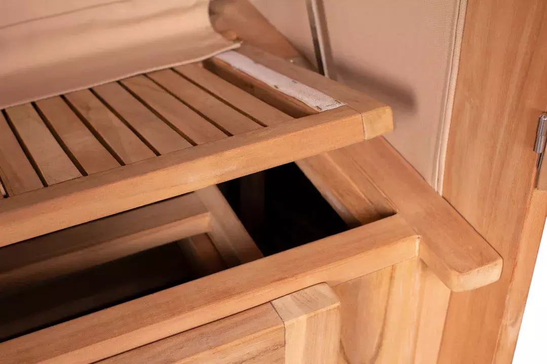 Der Strandkorb Rantum überzeugt durch die besonders hochwertig verarbeiteten edlen Materialien. Das massive Teakholz mit seinem warmen, hellen Farbton verleiht dem Strandkorb Rantum seinen ganz besonderen Charakter und macht ihn zu einem qualitativ hochwertigen Gartenmöbel. Teakholz ist ein besonders hochwertiges Holz und eignet sich aufgrund seiner natürlichen Eigenschaften hervorragend für Strandkörbe. Wir verwenden ausschließlich nachhaltig produziertes Plantagen-Teakholz. Aufgrund seines hohen Öl- und Kautschukanteils hat Teakholz einen natürlichen Verwitterungs- und Alterungsschutz. Egal ob Sie die im Laufe der Zeit entstehende silbrig-graue Patina lieben oder den natürlichen hellen Farbton bevorzugen, der sich durch regelmäßiges Ölen des Holzes erhalten lässt - unser Teakholz überzeugt durch seine Langlebigkeit und die hochwertige Optik!